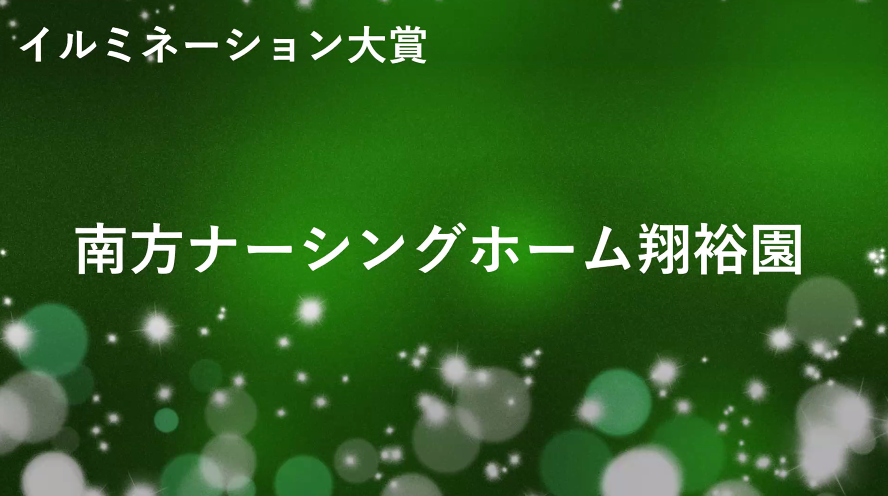 南方ナーシングホーム翔裕園は土地柄周辺に住宅が少ない中、高校生とのつながりを大切にしており、地域を巻き込んで元気にするようなイルミネーションだったため大賞にいたしました。
