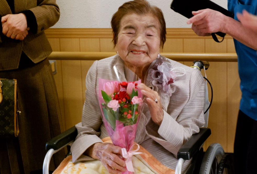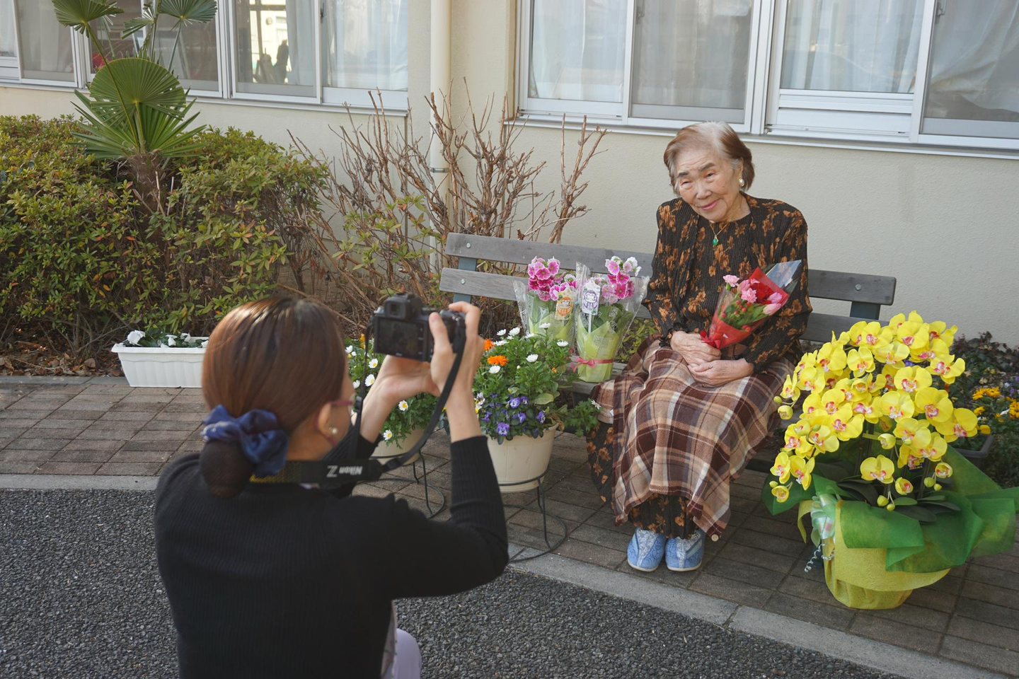 例えばケア研の中でも発表がありましたが、もう90歳を超えていて座った姿勢を保つことも難しいので普段はベッド上での生活が基本の方がいらっしゃったんですね。この方は日常生活の動作もだんだん難しくなってきていて、お食事も召し上がらなくなってきたり、朝起きるのが難しくなってきたりしていた方でした。「最後の誕生日になっちゃうかも…」という想いもあってセラピーを受けていただいたのですが、その際に自発的にご自身の右手で何とか座った姿勢を保って写真を撮ることができたんです。担当の理学療法士もびっくりの結果です。