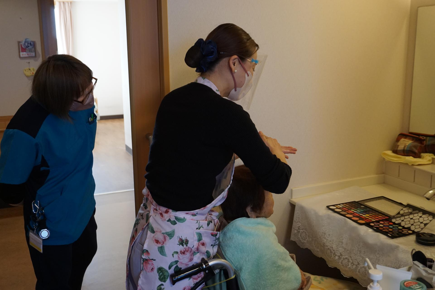 長田)一番は「ご利用者さまが幸せになるように」ですね。そのためにセラピー中にもきちんと対話して、少しでもリラックスしてもらえるようにしたり、メイクの方だったらお色も自分で選んでもらったり。