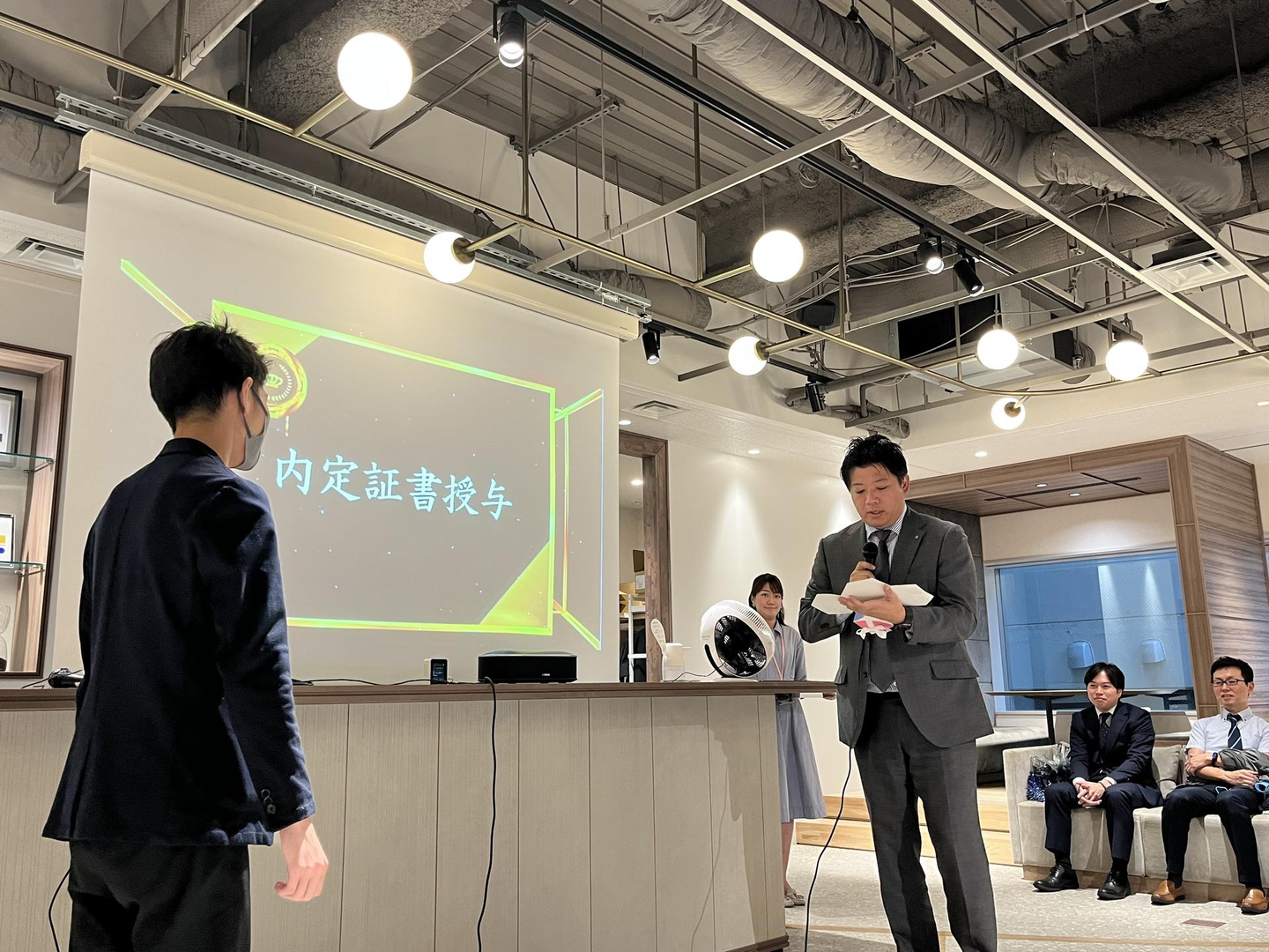 その決意を認めるという意味を込めて、社長から一人ひとりに内定証書が渡されました。
