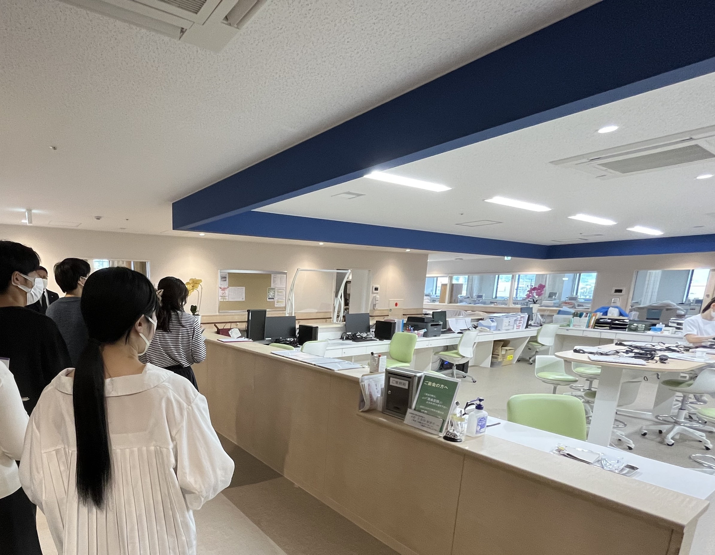 学生の皆さんと待ち合わせたら、ついに病院見学です。西京都病院は、事務長に院内を案内していただきました🏥