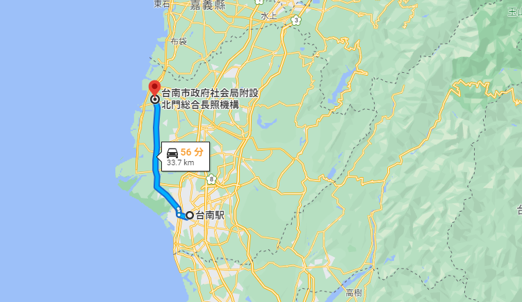 👆台南市の中心部に位置する台南駅からは、車で1時間ほどの距離にあります🚙 ©️Google
