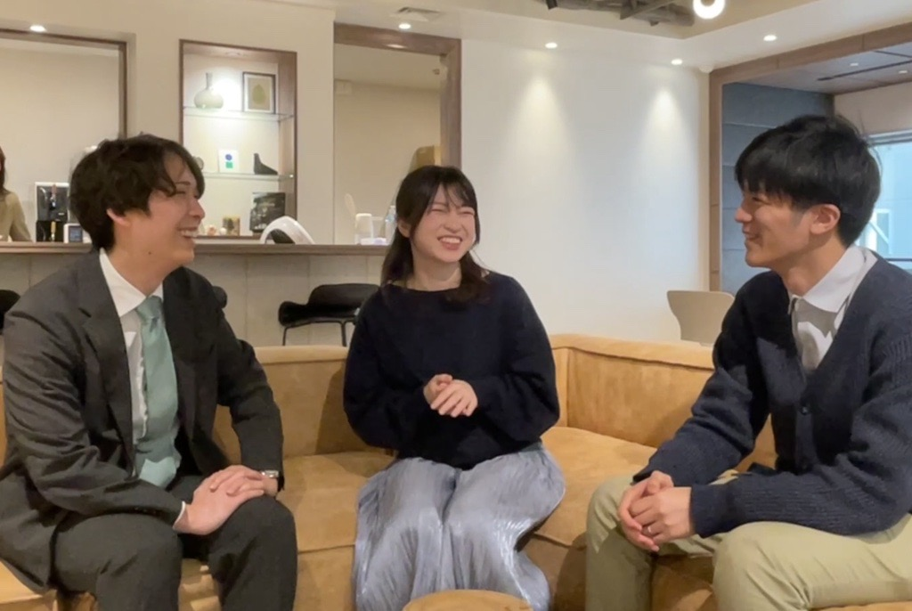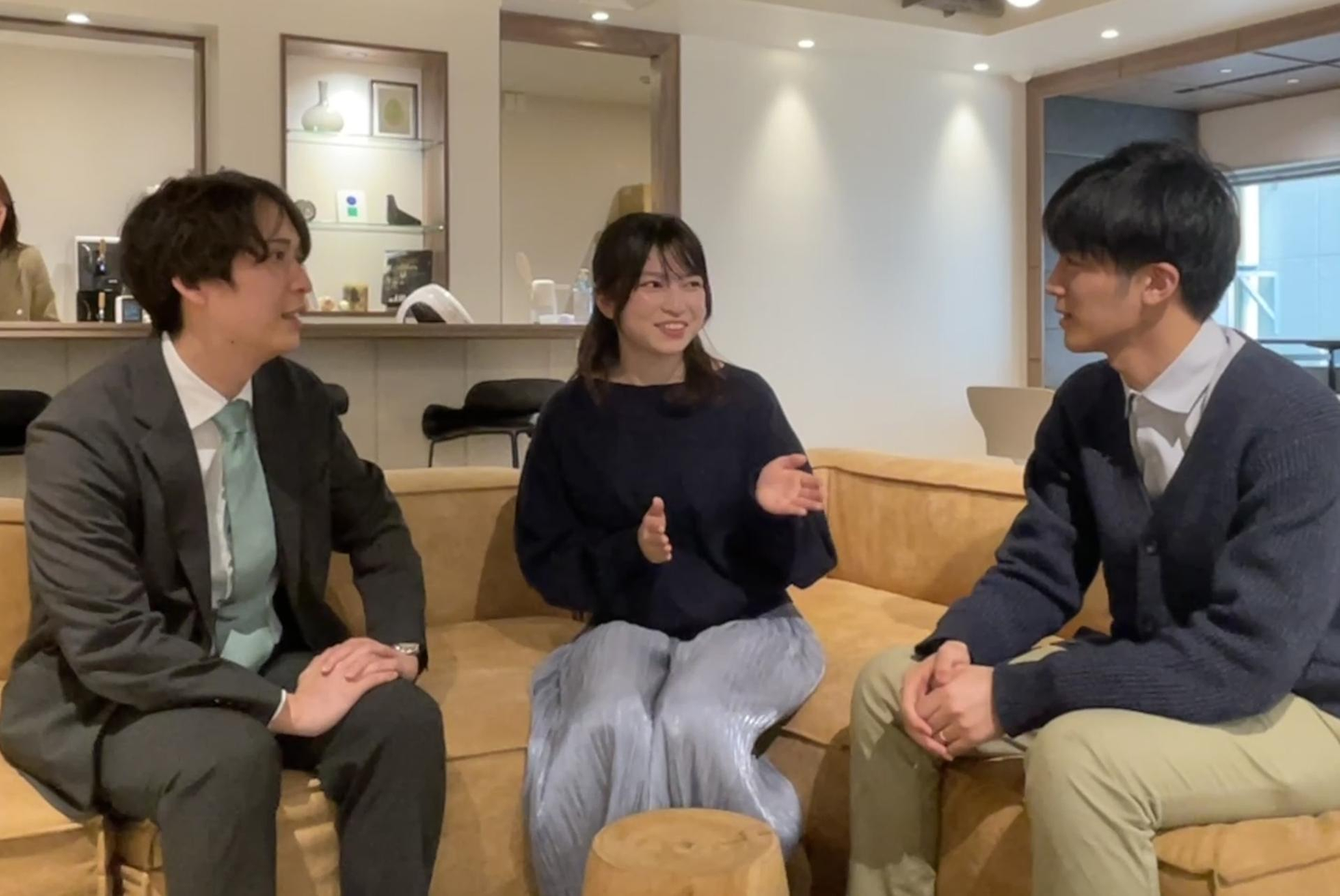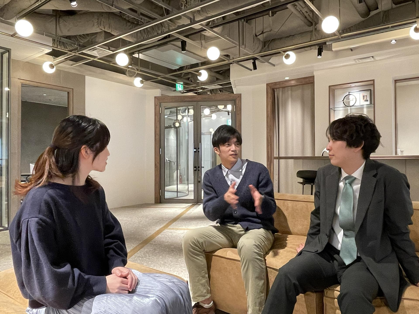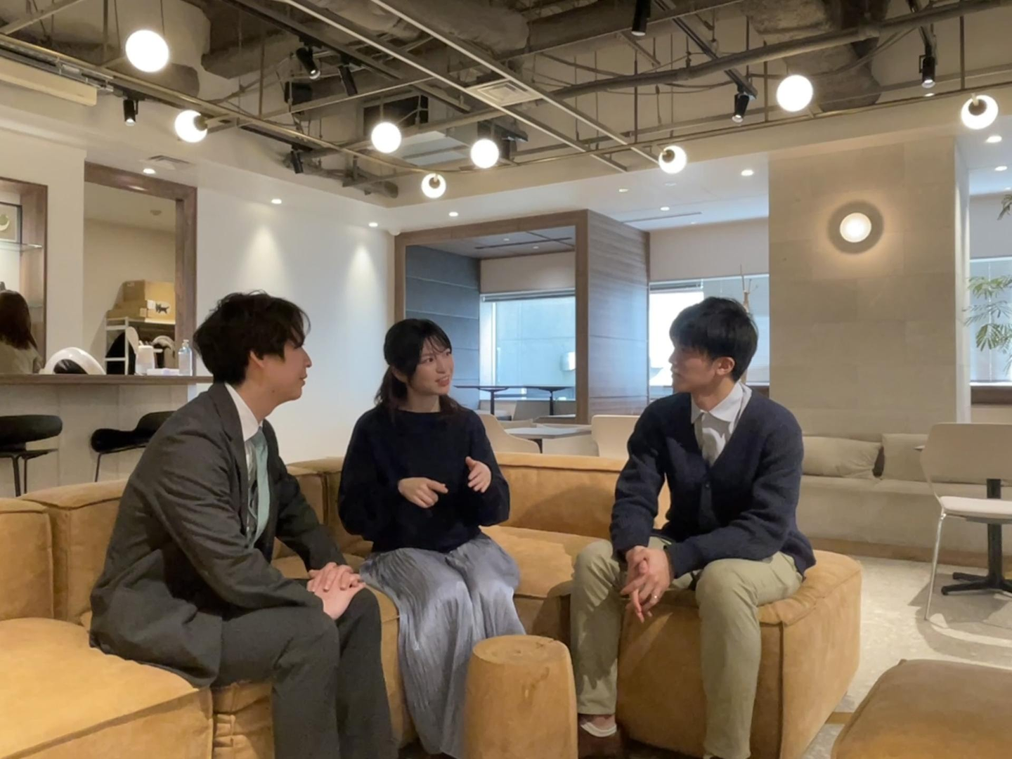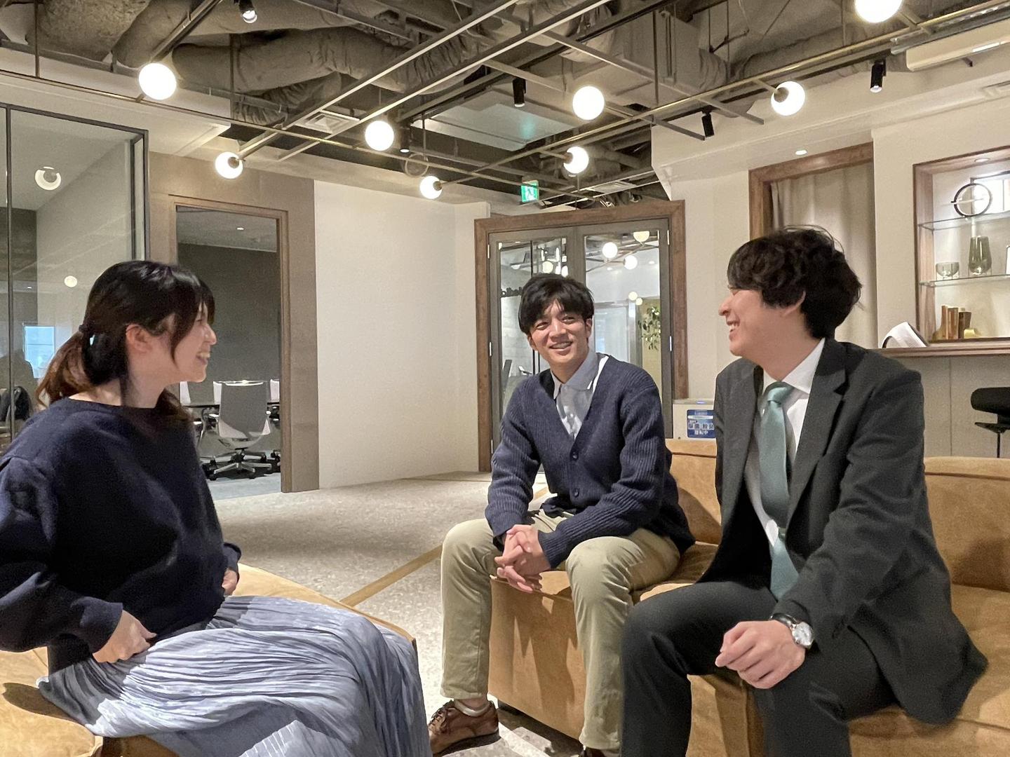 ☝今回のインタビュイーである新卒1期生の3名です!(左側:星加さん、中心:宮原さん、右側:廣松さん)