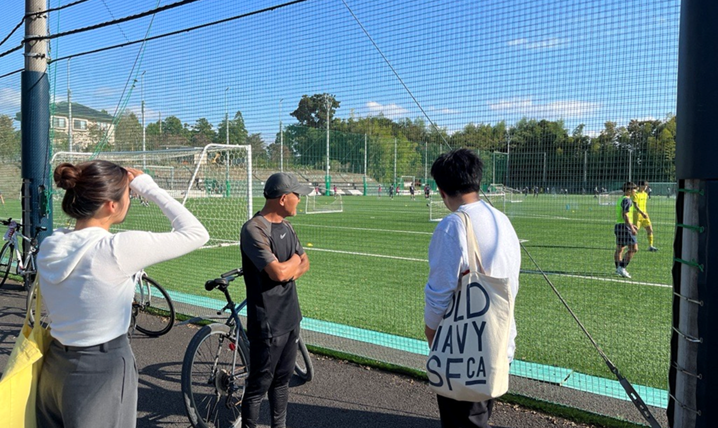 👆浦和学院高校での現場見学会の様子。サッカー部の練習風景を見ています!