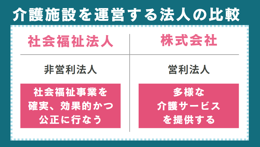 ただ、社会福祉法人と株式会社の福祉施設は、制度の違いだけでなく、実際の運営のスタンスにもはっきり違いがあります。