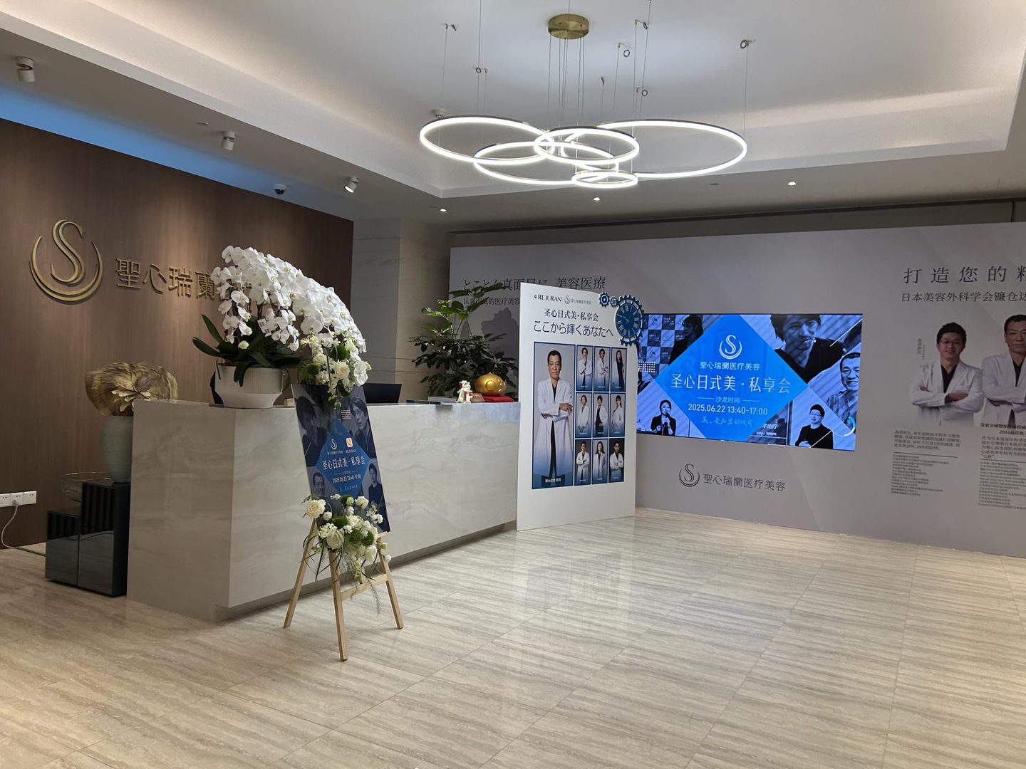 上海院に到着後、早速研修最大の目的である聖心美容クリニック上海院を訪問しました。まず、上海院のスケールと洗練された雰囲気に圧倒されました。特に広々とした待合スペースには、"広い空間が好まれる"という中国独自の文化的価値観が反映されていました。そして、最新の医療設備と華やかで落ち着きのあるインテリア、徹底した衛生管理体制の完成度の高さに日本メンバーからは感嘆の声が上がりました。