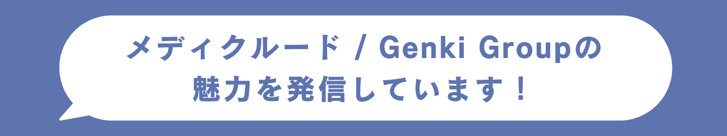 だからこそ、メディクルードの選考を受けてくださっている皆さんには、「メディクルードだけではなく、Genki Groupの施設・取り組み・働く仲間の魅力も伝えたい!」「早いうちからGenki Groupについて知ってほしい!」と思っています。このような想いから、グループの情報をWantedlyで発信し続けているのです。