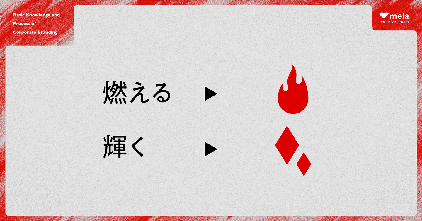 この言葉には「燃やす」という強い動詞が入っています。だからこそ、“メラメラと燃える色”が自然に浮かびます。色選びに迷うこともなく、全員が同じイメージを共有できる。