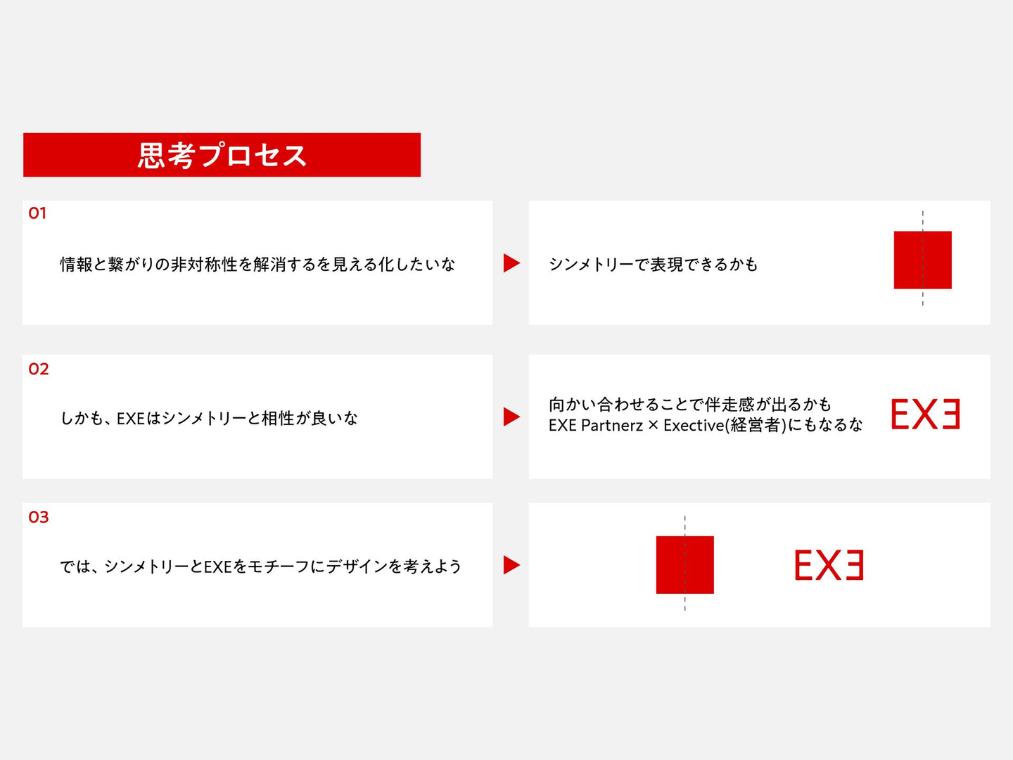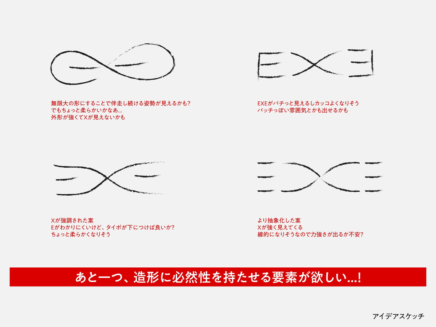 また、それがEXEという社名と相性が良いと感じました。そこで、EXEを造形のベースにすることを決めました。