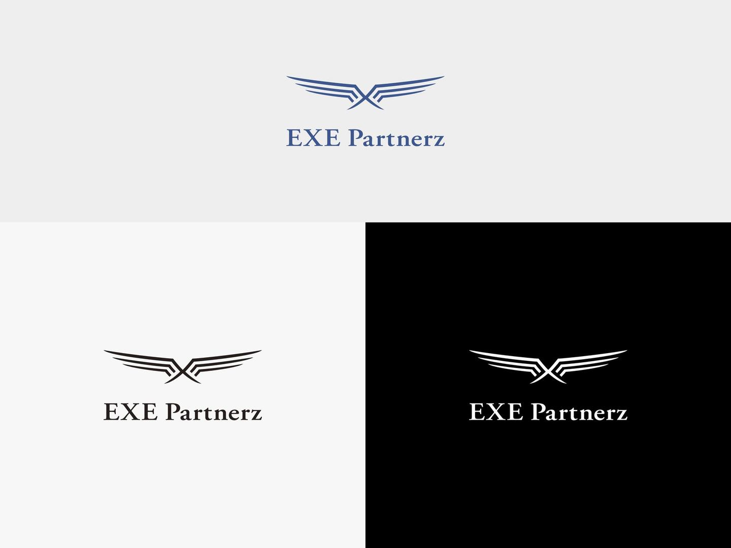 EXEとシンメトリーと翼のイメージでこのようなロゴに仕上がりました。