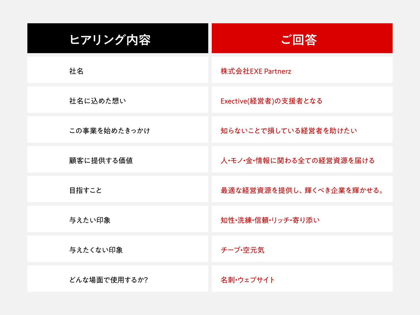 ヒアリングの内容から、EXE Partnerzが提供する価値を言語化します。
