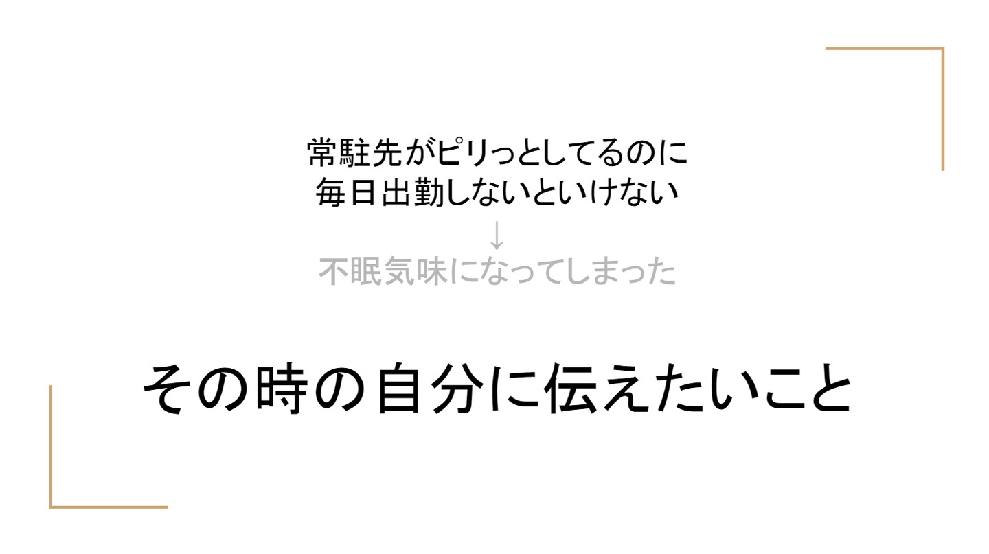 その時の自分に伝えたいこととして、クライアント様とのコミュニケーションで悩んでいる方へ向けたアドバイスをいくつかのポイントでご紹介いただきました。