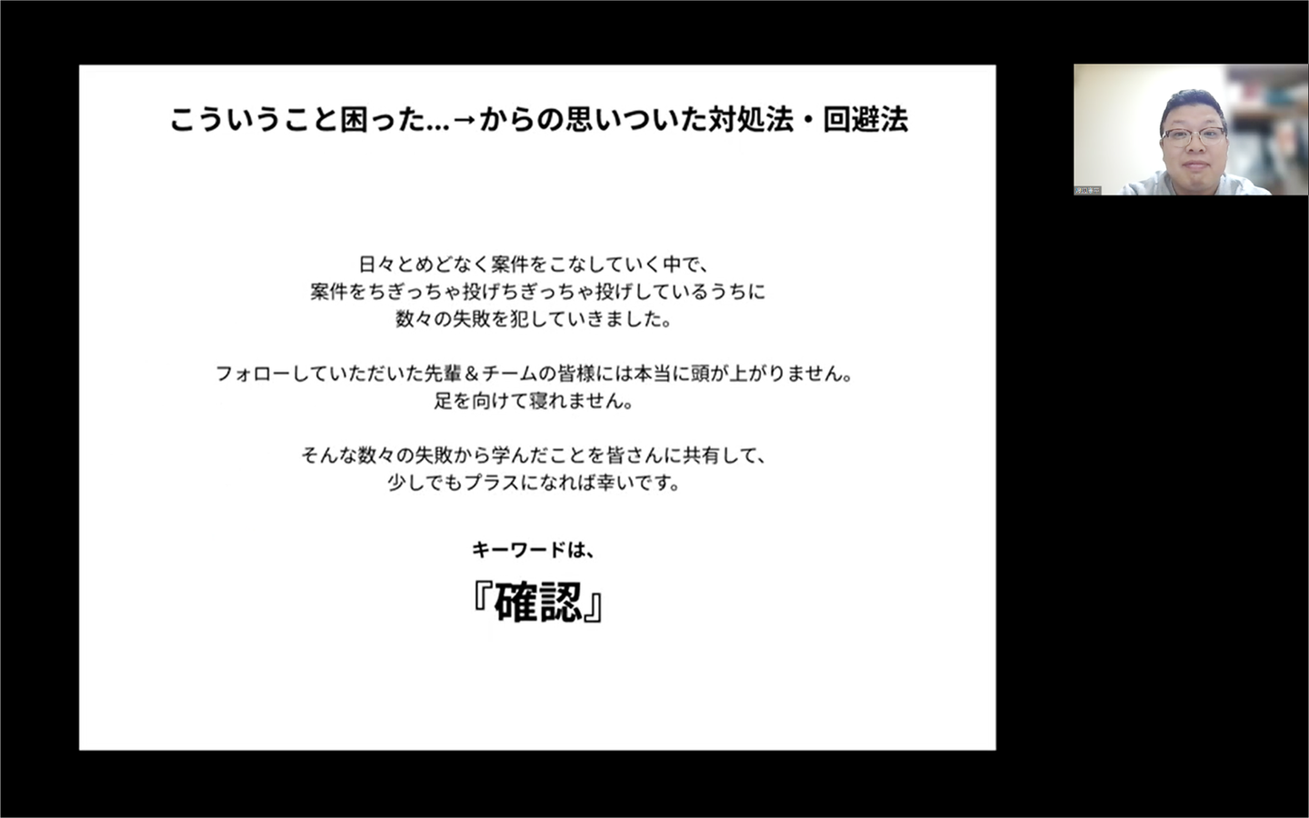 渡辺さんが実際に経験したことを元にご紹介いただいた対処法は、とてもリアリティがあって今後の参考になる内容でした。キーワードである『確認』を意識して、何かを始めるときや期限が近付いてきたときなど、問題が起こる前に先手を打って対処していくことで、取り返しのつかない事態に陥ってしまわないよう逐一確認を忘れずにしていきたいですね!