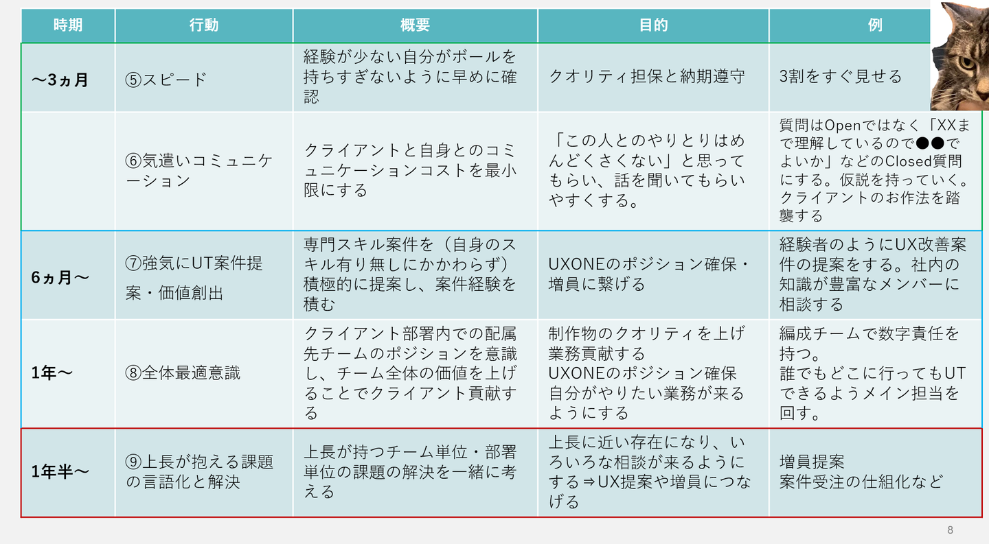 その他にも、”⑦強気にUT(ユーザーテスト)案件提案・価値創出」”についても詳しくお話してくださいました。