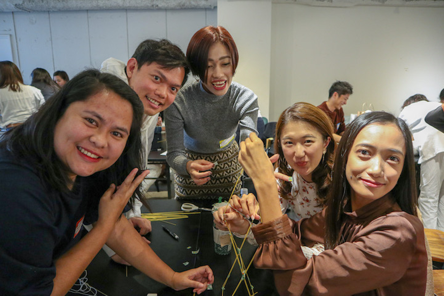 ビジョン共有の後は全員参加のアクティビティの実施。今回はマシュマロチャレンジをやりました!ご存知でない方に向けて以下にルールを記載します。