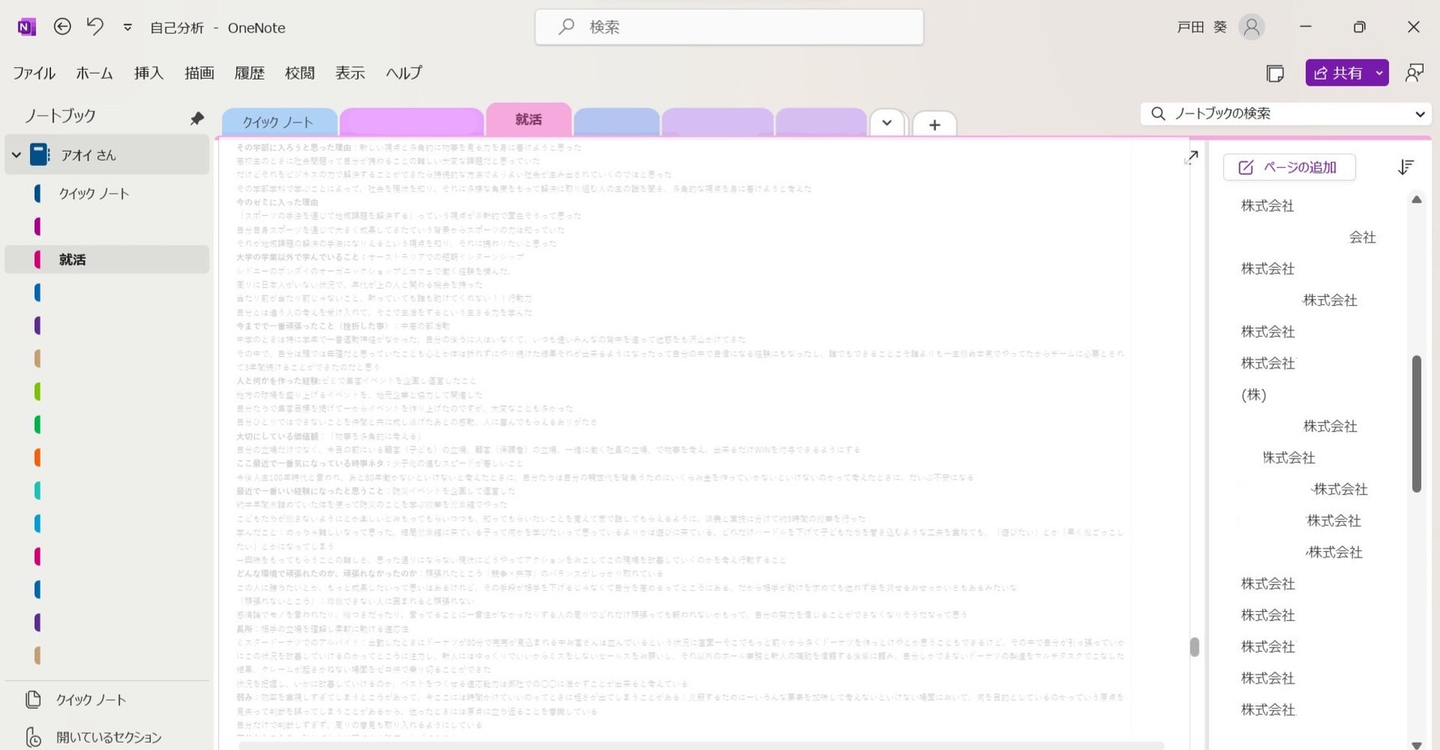 上記をOnenoteというメモツールで企業ごとにフォルダを作って貯めていきました。