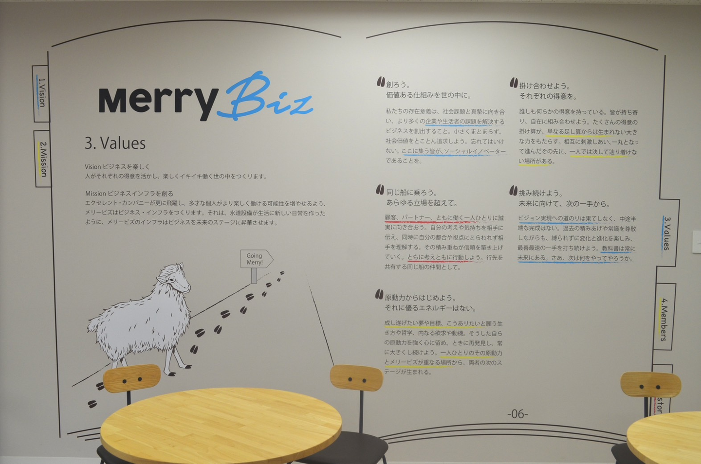 「『ビジネスを楽しく』をビジョンとして掲げるからには、まずメリービズがそれを体現することが前提」という話と、
