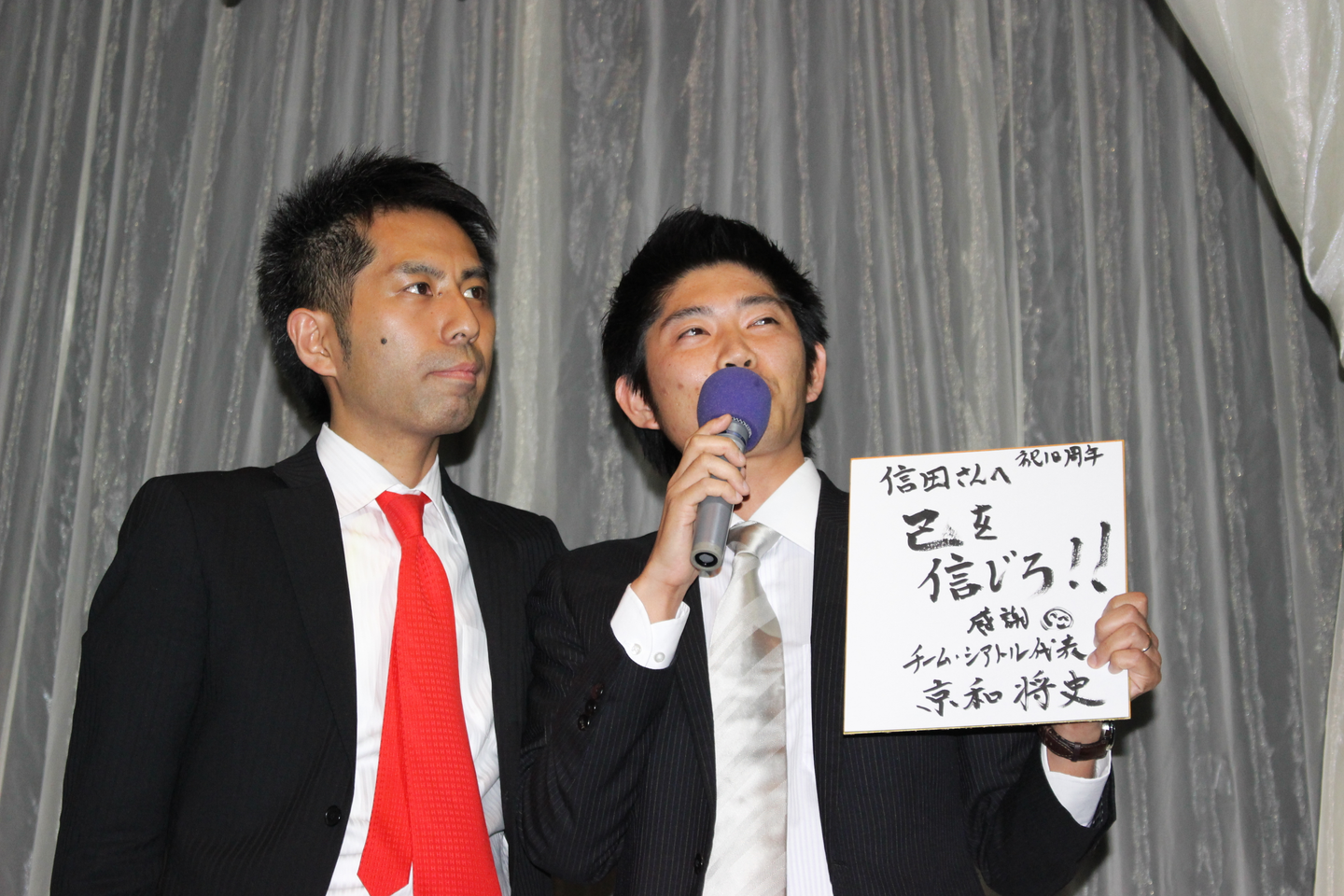 < シアトル10周年パーティでの京和さんと信田さん。 お二人とも良い顔をされてます!(^^)! >