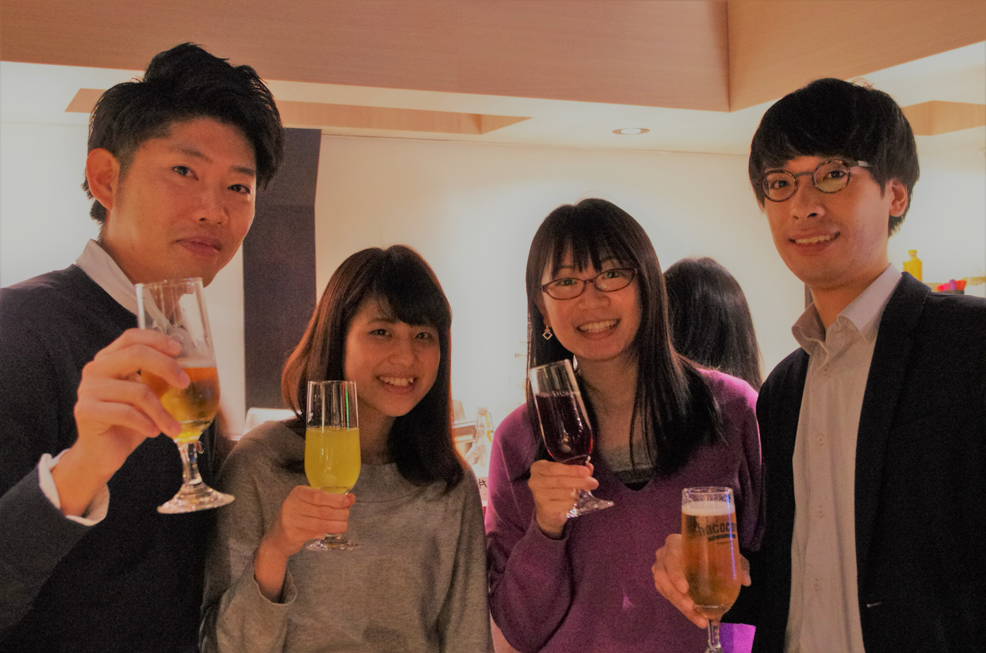 < 後輩との忘年会でのお写真。 気軽に話せる仲なのが良いですね(´▽`*) >