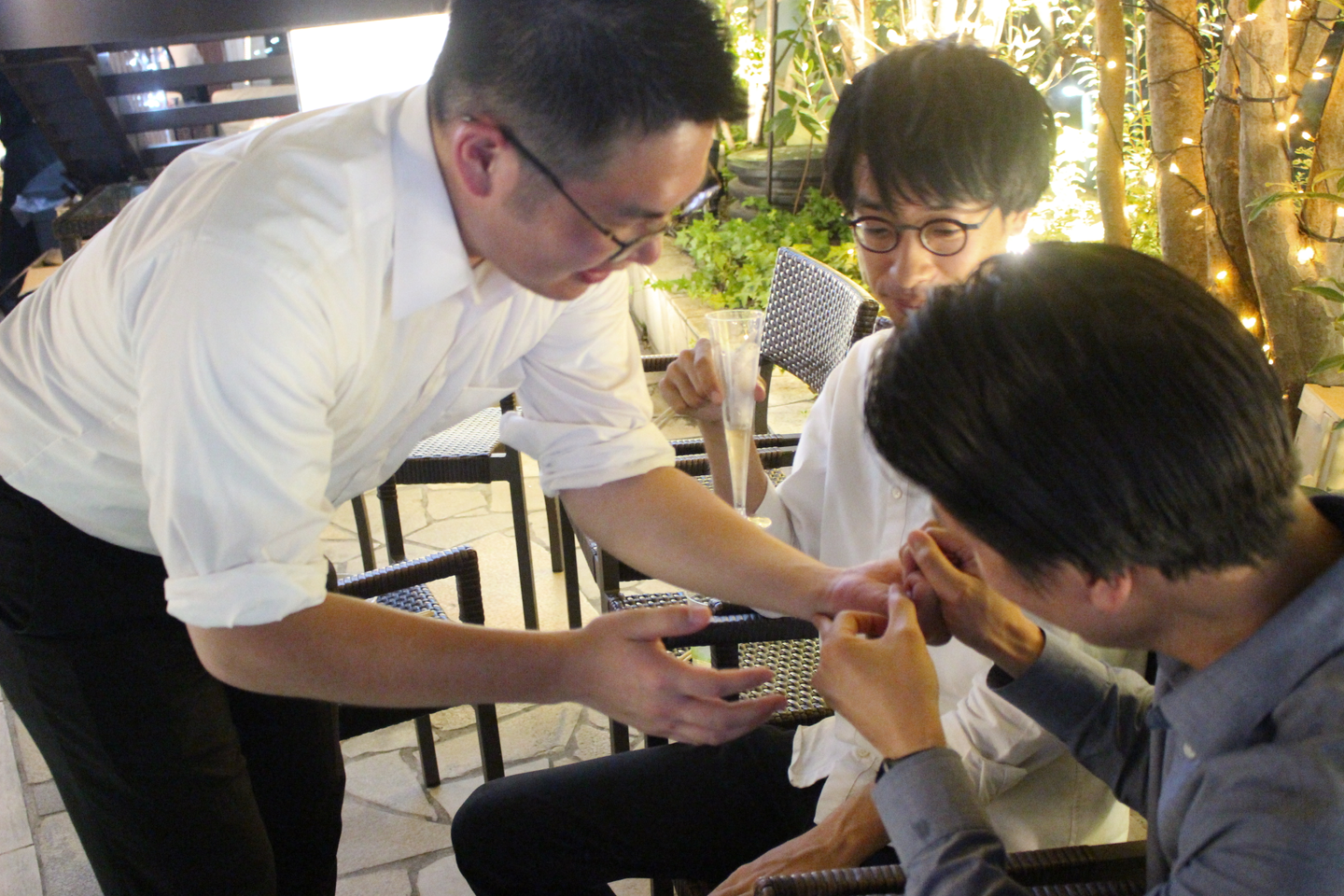 手相占いに興じるメンバーや。