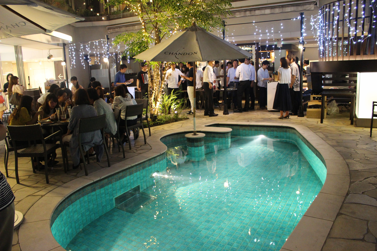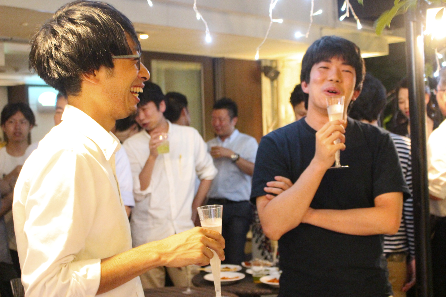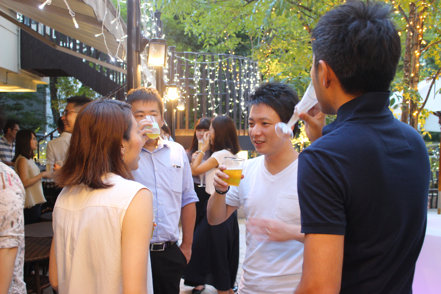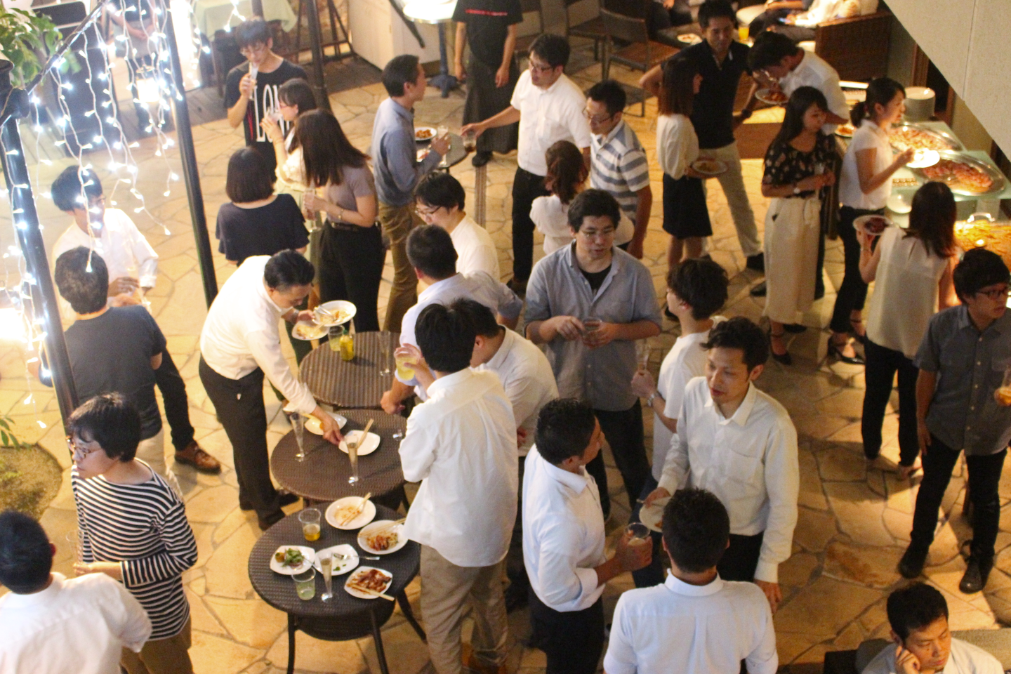 ライトアップされた店内で思い思いに交流していく社員たち。