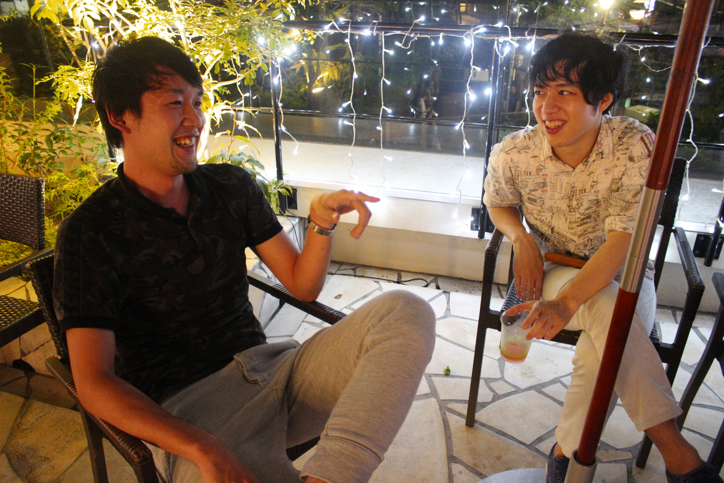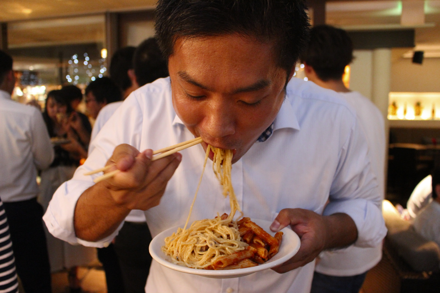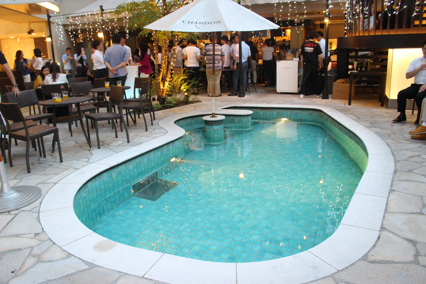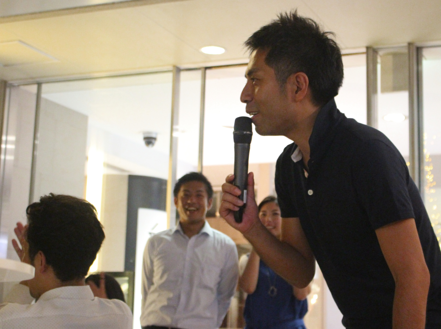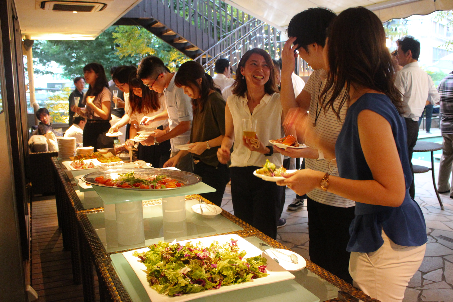 ライトアップされた店内で思い思いに交流していく社員たち。