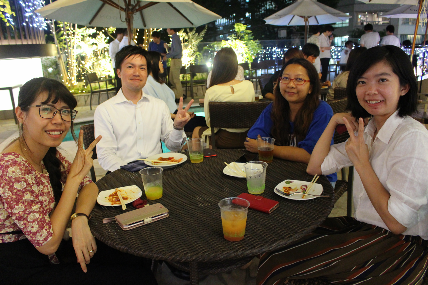 ▲全員集合の乾杯前にウェルカムドリンクが出てくるところもさすがインスタ映えのお店!!!