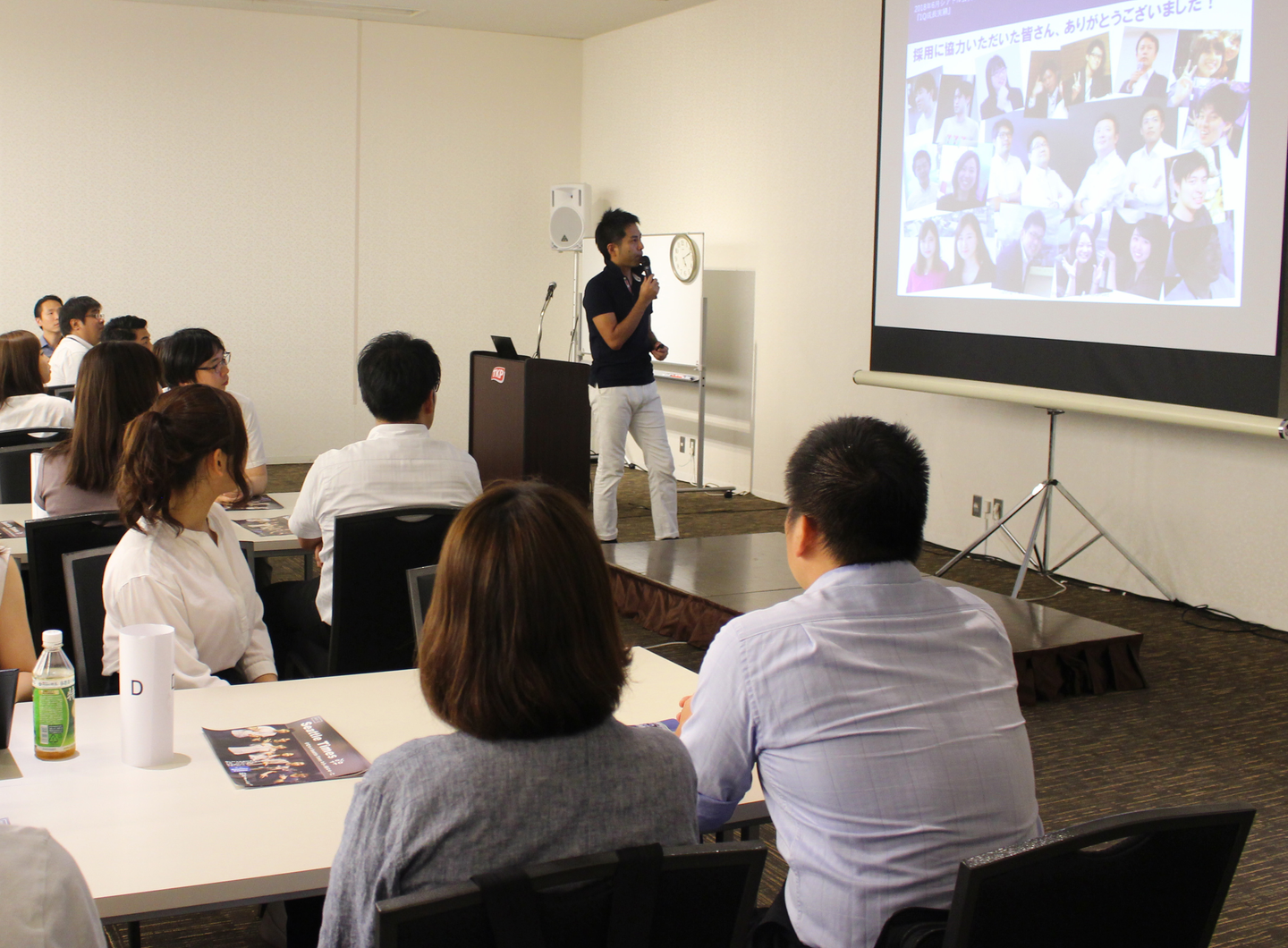 着いたメンバーから着席し、座席に置かれた社内報に目を通します。