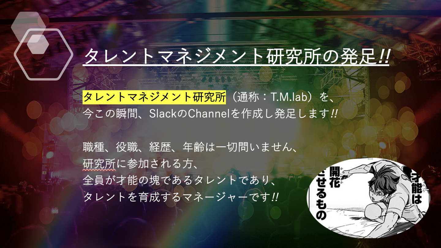 タレントマネジメント研究所のコンセプトは「1/77億分のタレントになる・創る」ということで、