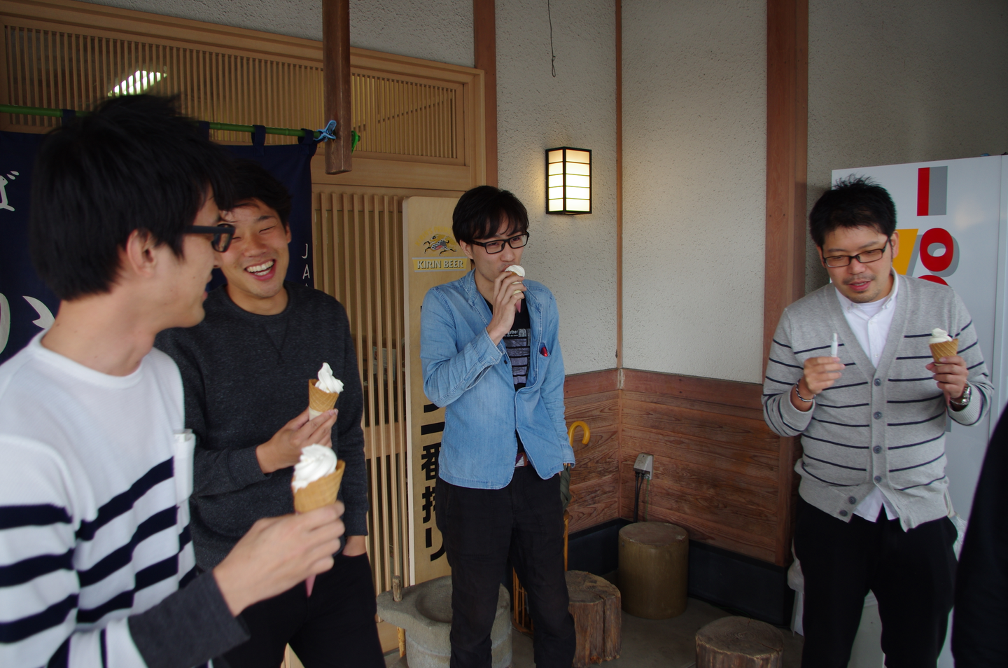 < 社員旅行での一枚。アイス美味しそうですね~。 >