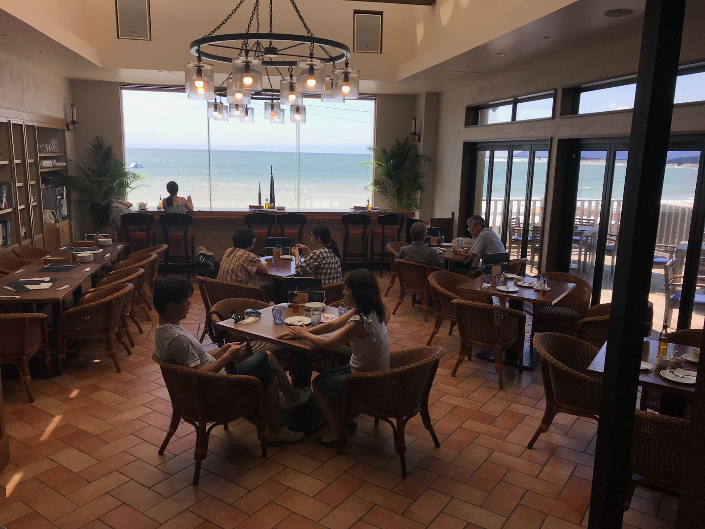 午前の仕事終了後、海の見えるレストランでランチをしました。レストランからは海が見えてとっても素敵でした♪