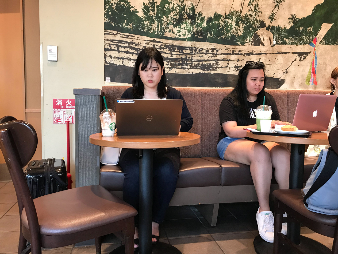 台風の影響で、波がいつもより高く、初心者には少し難しかったですがチーム全員なんとかボードに立つことができました!