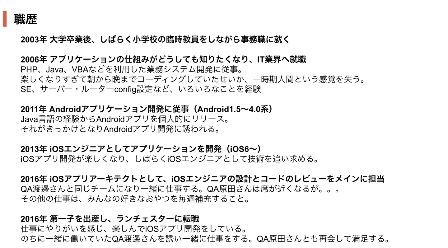 ー 本日はお忙しい中お時間いただき誠に有難うございます!早速ですが、iOS開発、そしてQA・アプリチームを担当されている二木さんのご経歴やなぜランチェスターに入社を決められたのかお伺いさせてください。