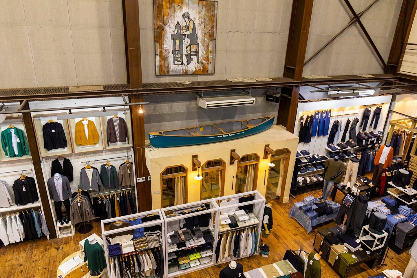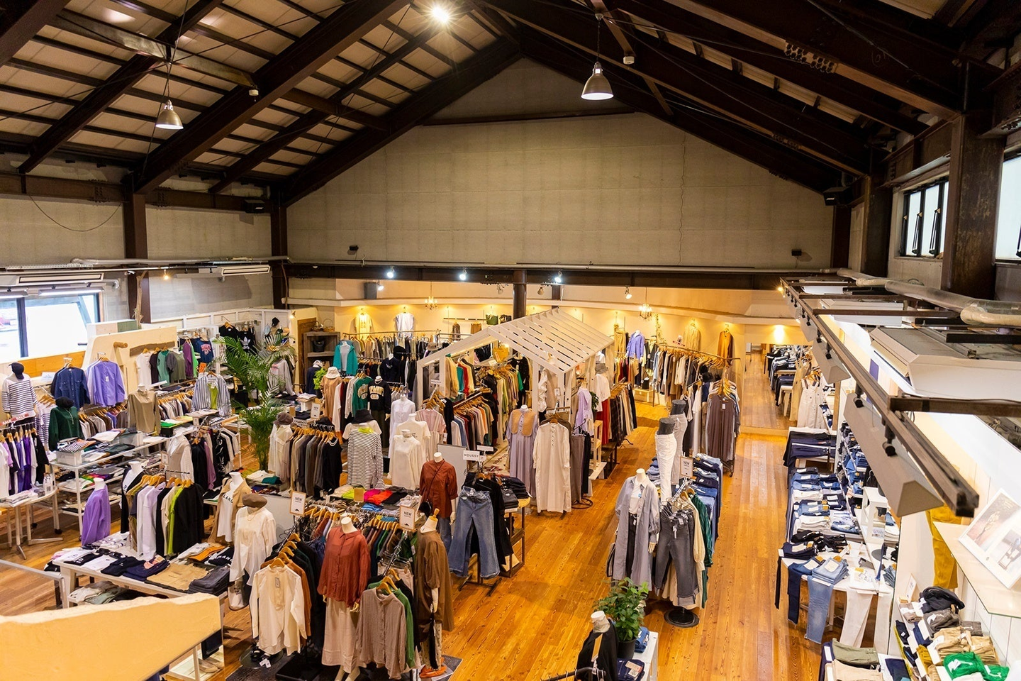 広々とした店内では、メンズやレディースなどのカテゴリーごとにエリアが区切られ、BINGOYAがセレクトした商品がずらりと並びます。