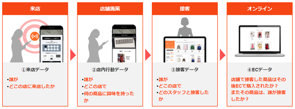 そうすると、誰がどこの店で何の所に興味を持ったかというお客様側の情報と、どのスタッフが接客をしたかという店舗側の情報を紐付けることが可能です。