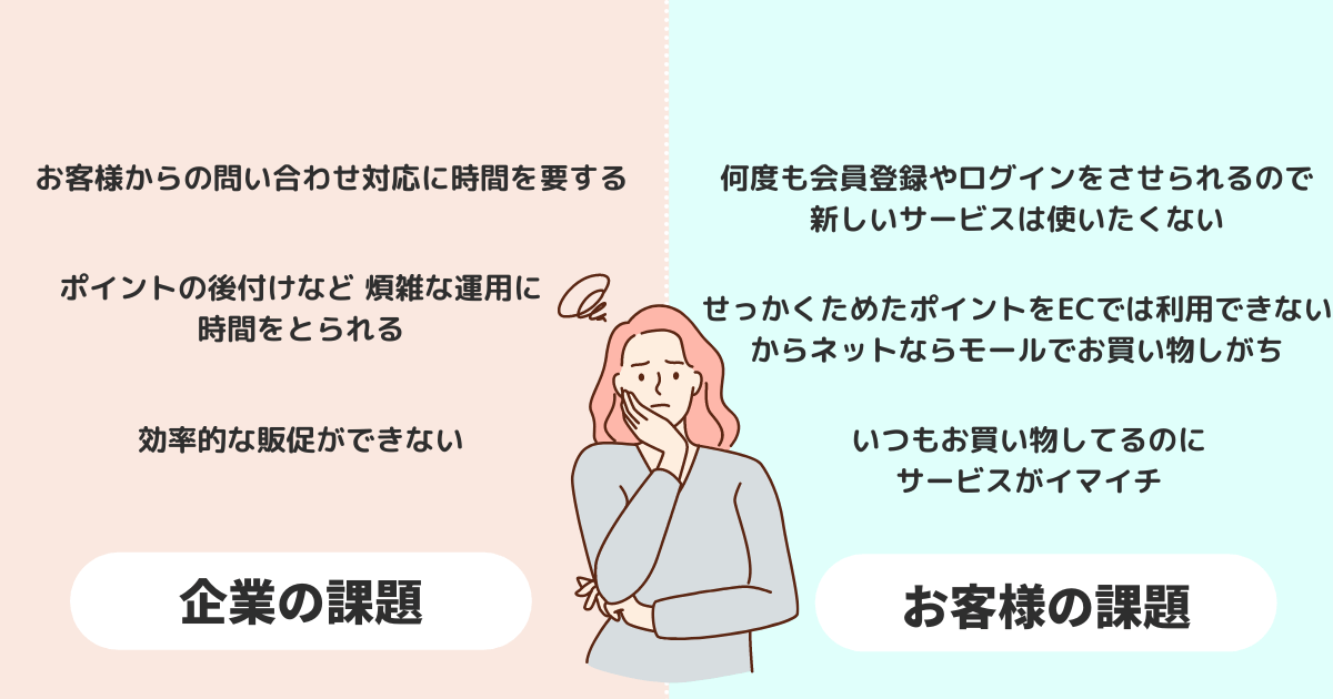- 実店舗は紙のポイントカードを配布するなどアナログで運用が煩雑となっていた