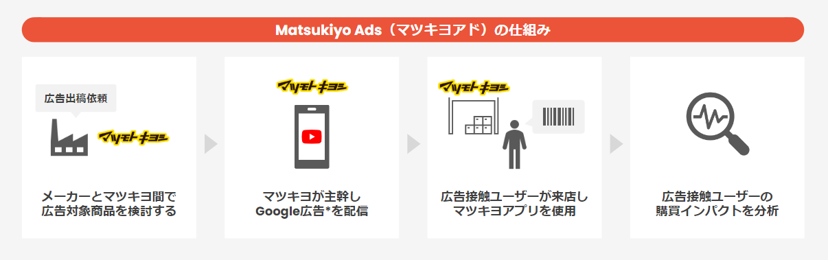 Googleのプラットフォームを活用した販促モデル「Matsukiyo Ads(マツキヨアド)」を提供しており、メーカーと共同で販促を行える仕組みが構築されています。