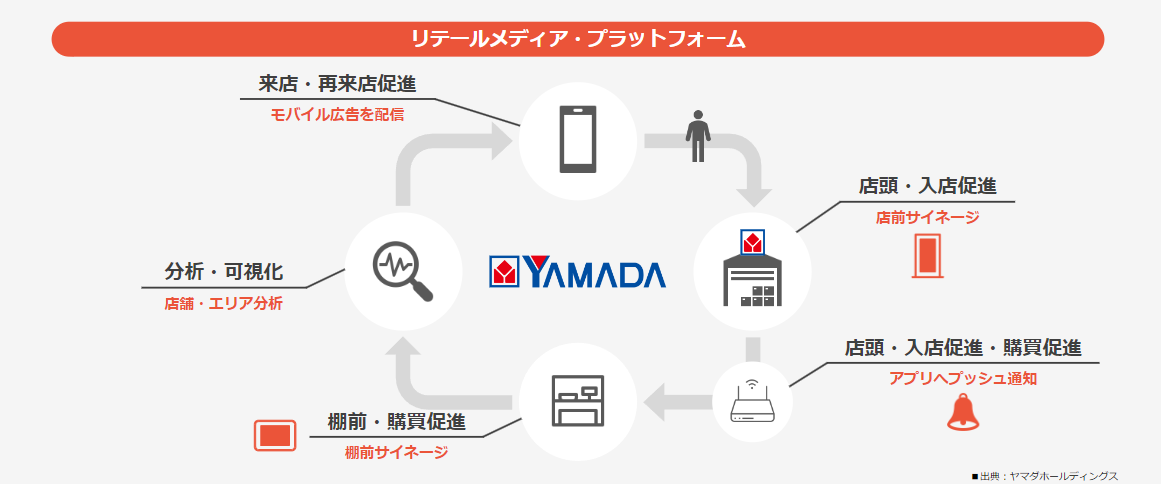 ヤマダデンキさんは、リテールメディアを展開していく上で「IoT」や「AI」を非常に得意としている「アドインテ」という会社さんとタッグを組んでいらっしゃいます。