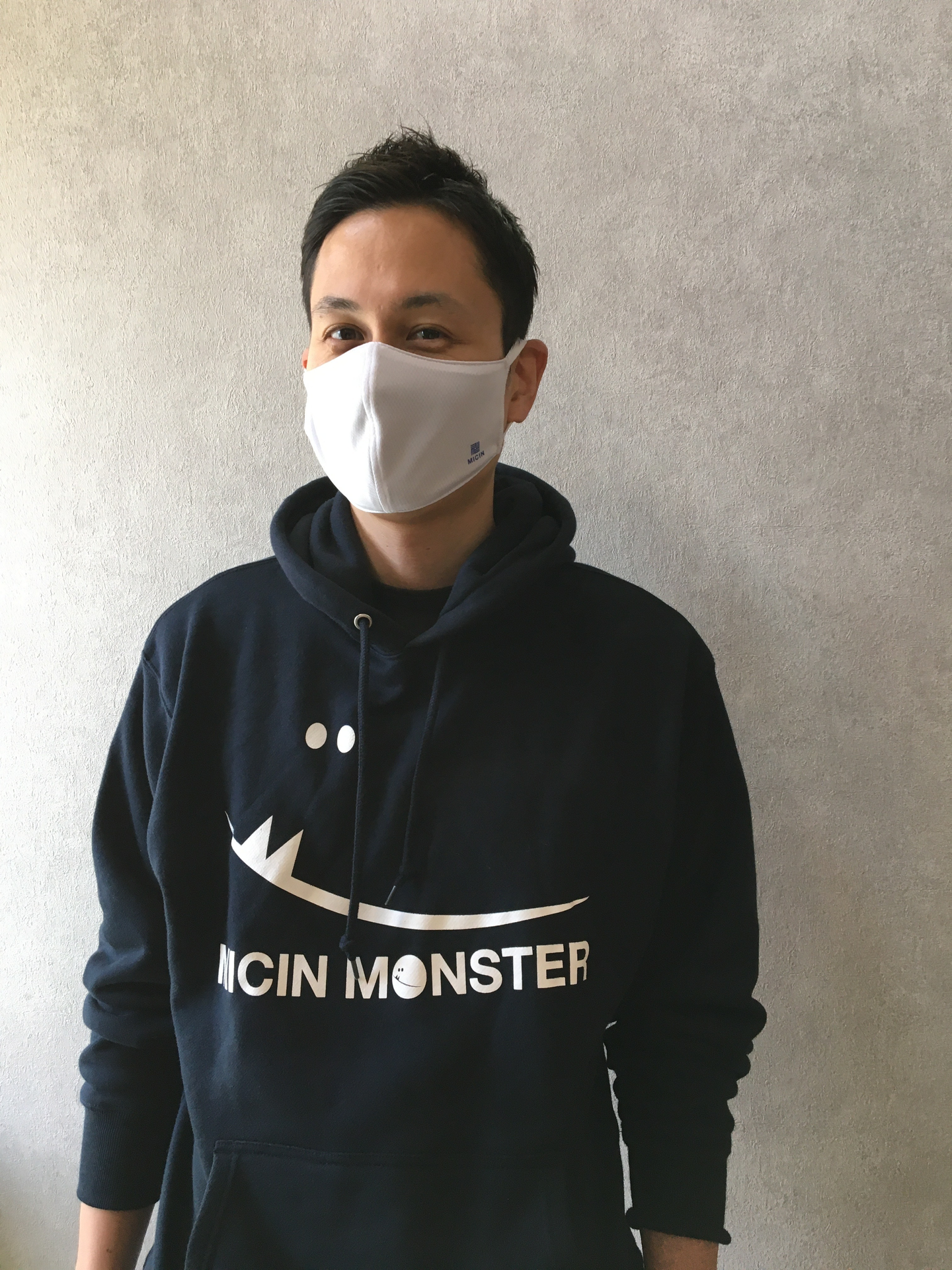 ◎MICINモンスターをあしらったパーカー(モデルはオンライン診療事業部のIPPOさん)