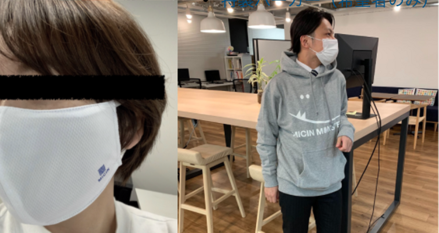 5周年のパーカーとマスクに身と顔を包むCEO原↓