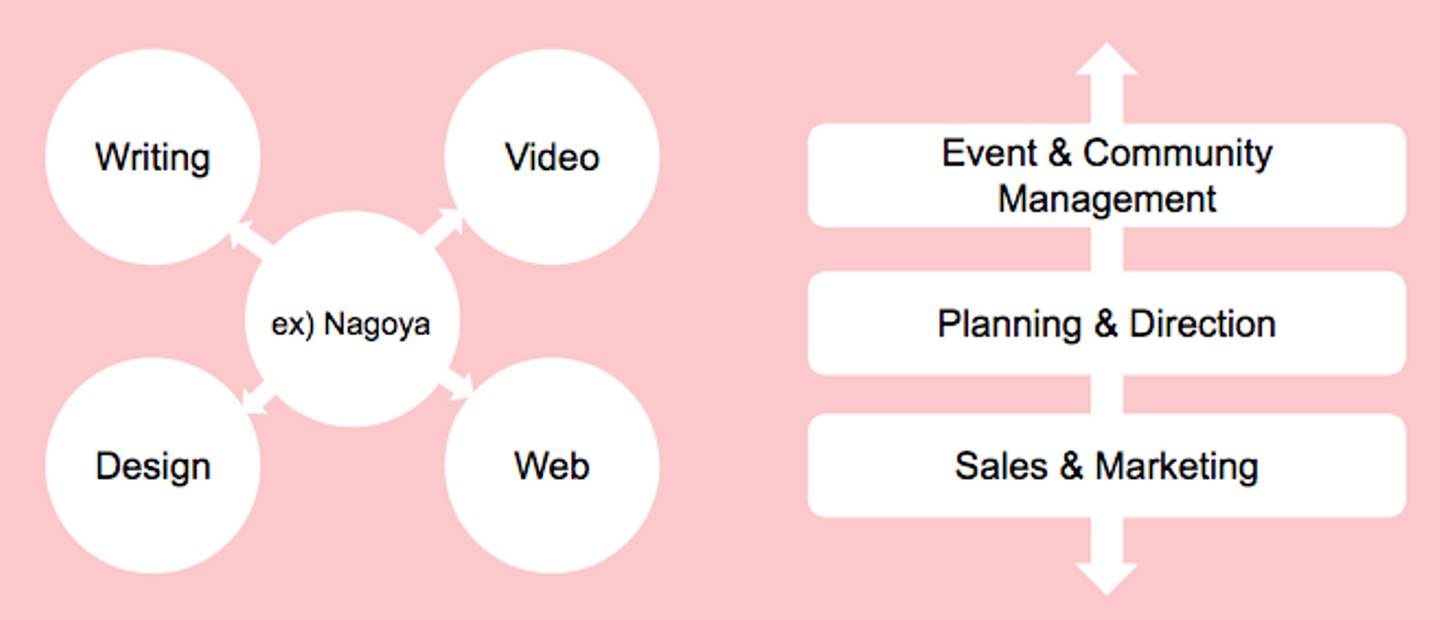 名古屋スタートアップ、チームどみにおん、カチノデの3社も同じで、1人社長+複数人のフリーランスという会社形態で事業をしていました。