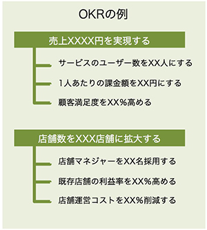 1つの「O(目標)」に対して3〜4個の「KR(主な結果)」を設定します。
