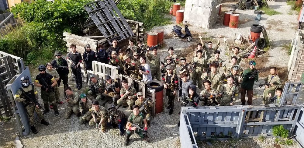 みんなでサバゲーフィールドに行き、社外の方も含めて明るく楽しく打ち合ってます!