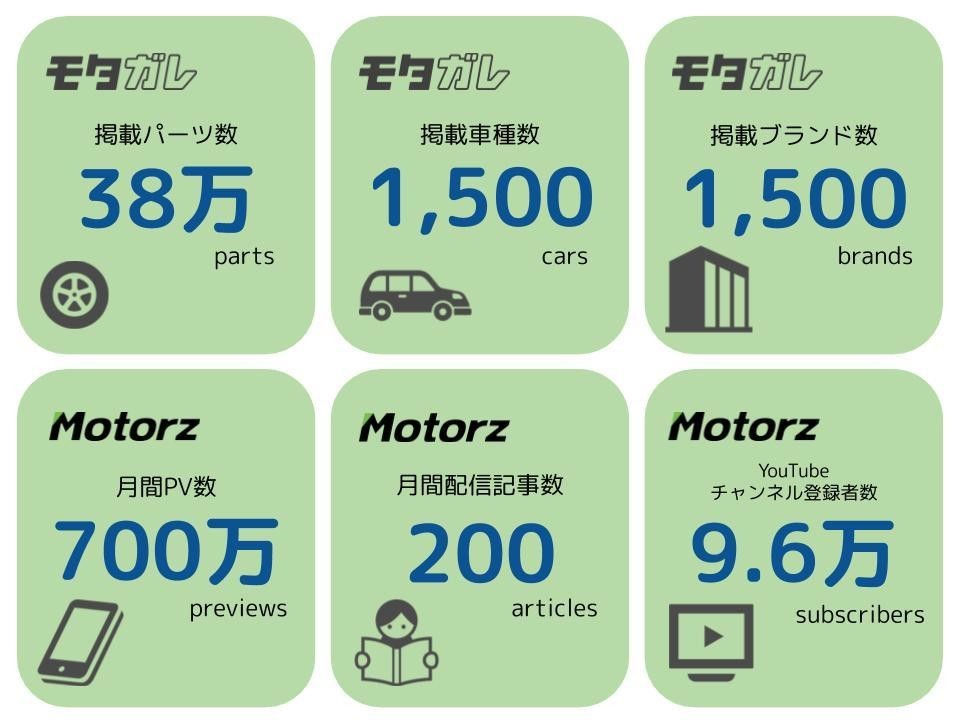 MiddleFieldが運営する「モタガレ」は、日本最大級の中古車とパーツのECサイト。実に4億SKU(※)もの巨大なデータベースを所持しています!