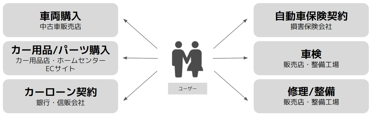 そして、ユーザーは自動車アフターマーケットにおける1つ1つのアクションにおいて、非常に多数の企業と関わる必要があります。