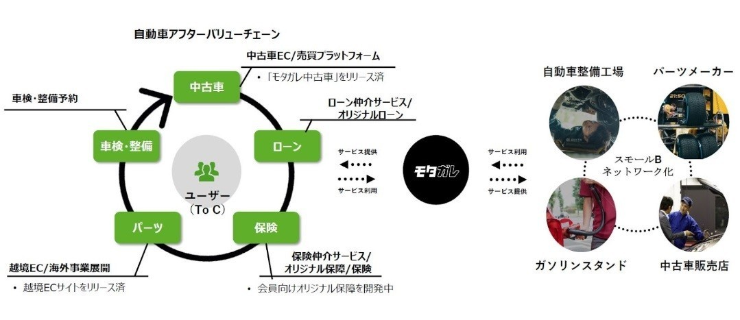 ユーザー向けには、自動車に関する全てのアクションが一か所で完結するようなオンラインプラットフォームを。事業者向けには、全ての取引や業務が一か所で完結できるようなオンラインツールを提供することで、自動車アフター業界を活性化することが、私たちのミッションです。