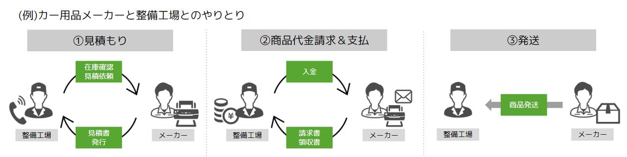 そして、この問題は1社がどうにかしようと思ってもなかなか解決しづらいのです。整備工場側が「毎回FAXは大変なのでメールで連絡を取りましょう」と言っても、カーパーツメーカー側が一括でFAX管理している場合、1社のみを別方法で管理するのは困難だからです。