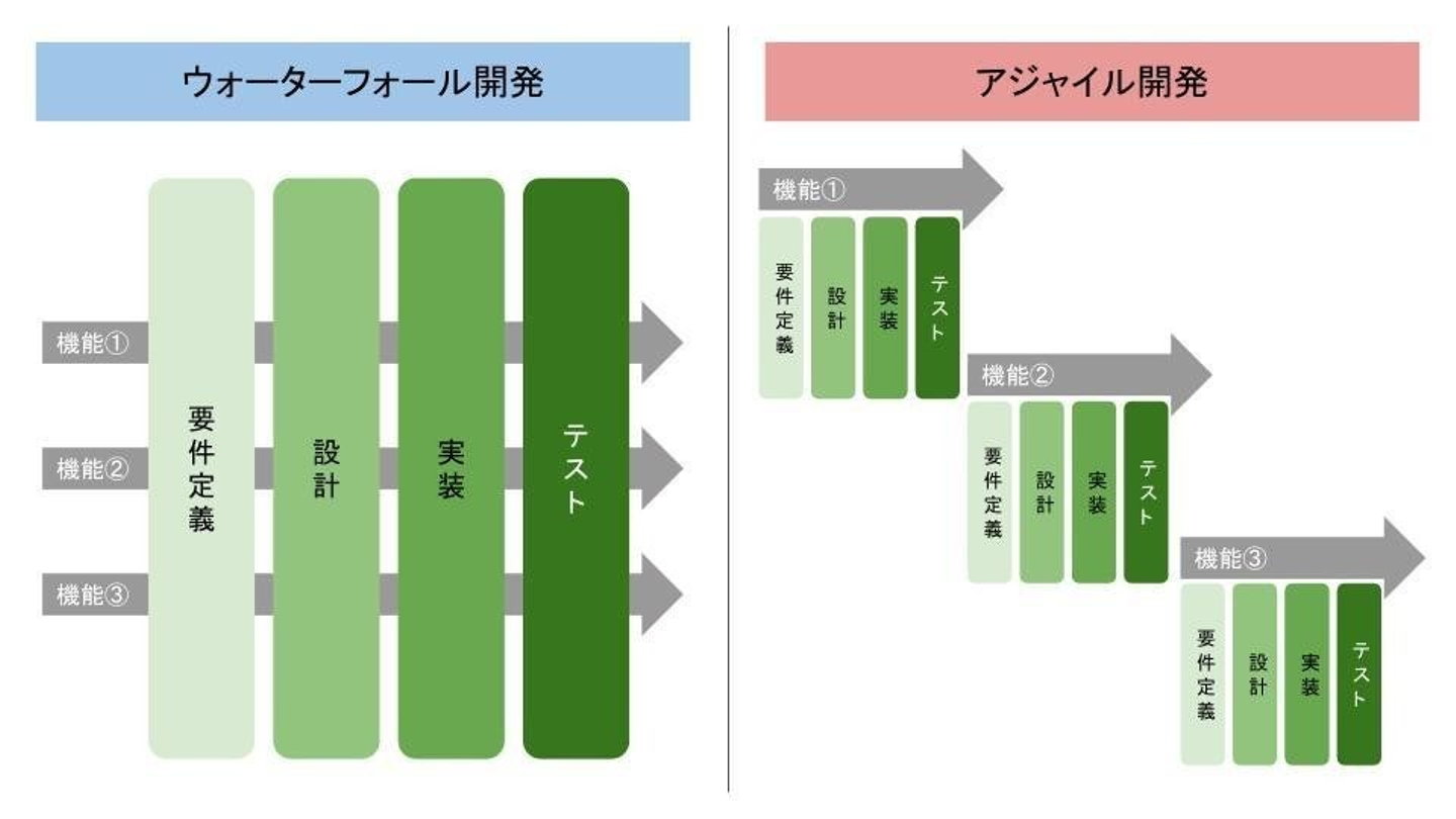 一方でアジャイル開発は、より短いスパンで開発工程を繰り返しながらシステムを作っていきます。