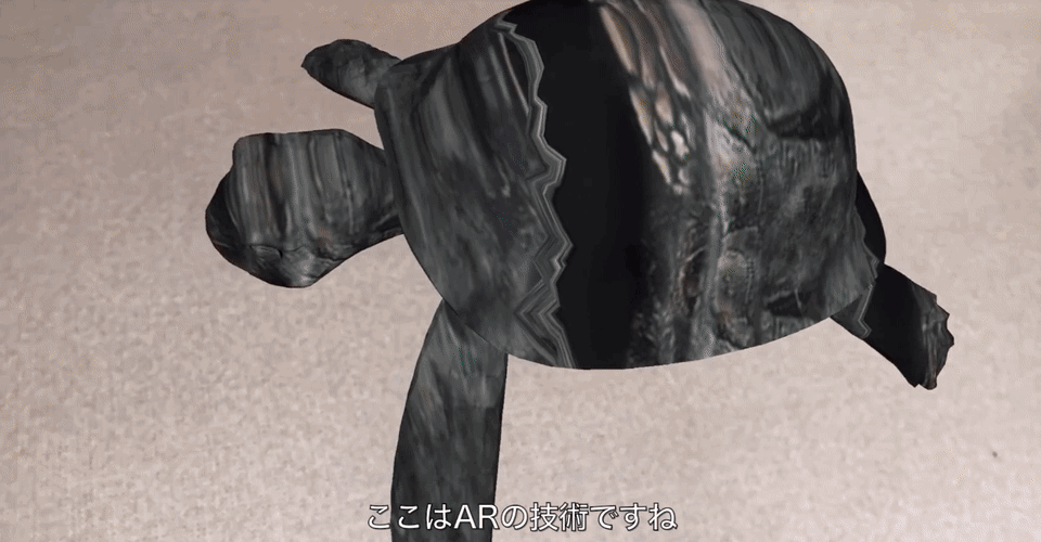 アプリを起動するとすぐに、目の前にカメが現れました。 ここはARの技術です。