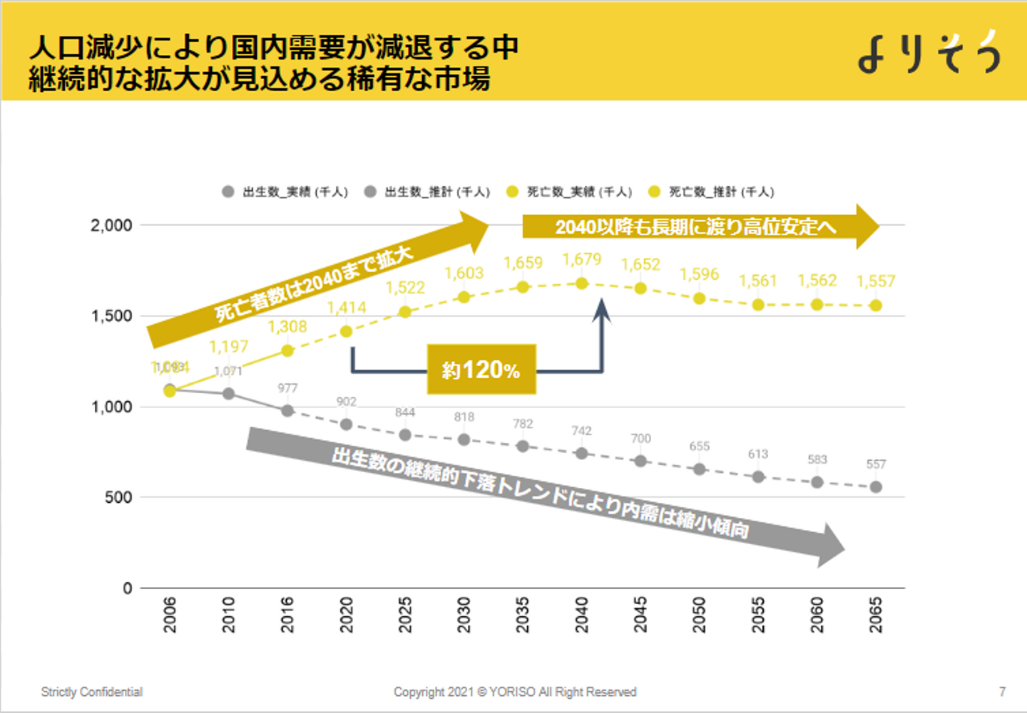 人口減少による国内需要が減退する中で、ライフエンディング業界は継続的な拡大が見込まれる稀有な市場と言えます。